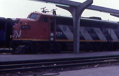 Bringing the Super Continental from Winnipeg was Canadian National F7Au 9151, nee Canadian National 9094 built by General Motors Diesel in 1952. This locomotive was retired two years later and probably scrapped.