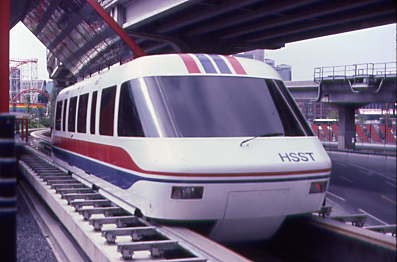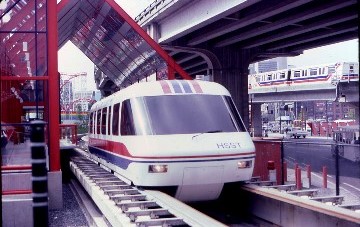 One highlight was riding in the High Speed Surface Transport, an example of Japan's lead in magnetic levitation technology. The train itself floated above the track on electro-magnetic modules. Visitors to the Japan pavilion could experience what future travel may be like by boarding the prototype rail car. Although the train has been clocked at speeds over 300 kilometres per hour, the short 450 metre track only allowed the train to reach a speed of 40 kph. After the far, it was shown at the Aoi Expo in 1987 and is now on static display at Okazaki Minami Park.