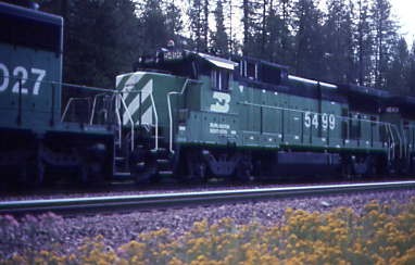 Burlington Northern B32-8 5499, built by General Electric in 1984, was one of two the railroad rostered. It became National Railway Equipment 5499 and is now GECX 5499.