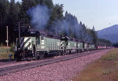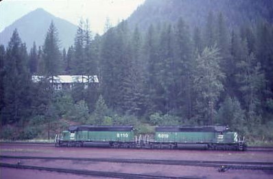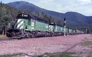 Burlington Northern 7922 West and the East Glacier (Glacier Park) station.