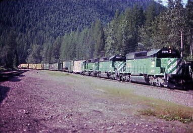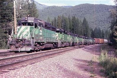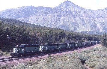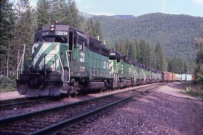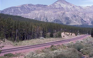7/25/1986 It was a bright sunny morning as I awoke at Whitefish and its the Bavarian-style depot. We departed on time and proceeded down the double-tracked main line to Columbia Falls, the site of a large aluminium plant. The railroad turned into a single-track main line here as I made my way towards the lounge car where I found a seat on the right and was ready for Burlington Northern's crossing of Marias Pass. This was discovered in 1853 by Isaac Stevens, the first Governor of Washington Territory, who surveyed a route for a Northern Pacific Railroad and discovered a pass near the sources of Maria's River suitable for a railroad, estimated to be 2,500 feet lower than the south pass of Fremont. By modern measurements, Marias Pass is 2,337 feet lower. During the Survey of 1889, Marias Pass was finally explored and charted by John Frank Stevens, principal engineer of the Great Northern Railway and the location of the pass had been rumoured for decades beforehand, but it took Stevens and a Flathead guide named Coonsah, who had been hiding out with the Blackfoot in Browning, to discover it.