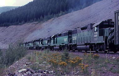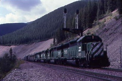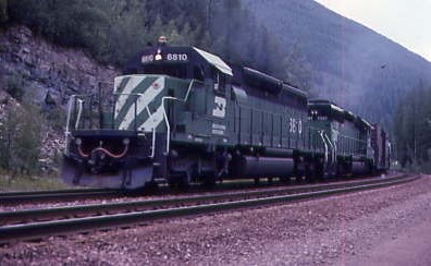 Burlington Northern SD40-2 6904, nee Burlington Northern 6368, built by Electro-Motive Division in 1973, was one of the helper units assigned here.