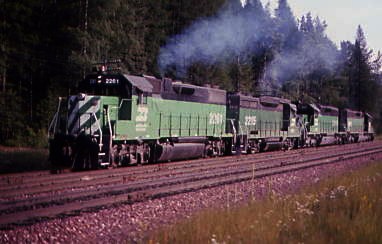 Burlington Northern GP30 2216, nee Great Northern 3016, built by Electro-Motive Division in 1963. It later became Burlington Northern GP39M 2815, then BNSF 2815 and finally Larry's Truck and Electric 2815.
