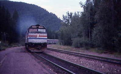 Dubuque Canyon came first then later, a stop at Glenwood Springs. Glenwood Canyon was as beautiful as I remembered, although construction had commenced for Interstate 70 since my last journey through it. We went to Dotsero and started our trek over the Dotsero Cutoff though Red Rock Canyon to Bond, then east of there, the Zephyr negotiated Gore and Byers Canyons before I had Rocky Mountain Trout for dinner as the train stopped at Granby and Winter Park. I returned to the lounge car for our passage through the Moffat Tunnel and then the descent down the Front Range to our on-time arrival in Denver, where I taxied to the Travelodge for a hot shower and a good night's sleep in a stationary location.