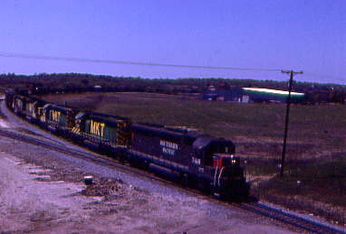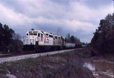 4/21/1987 The KCS gave their line-up over the radio at 7:00 AM for their First, Second, Third and Fourth Subdivisions, at 7:30 for the Fifth, Sixth and Seventh Subdivisions. Since we were about to follow the Fifth Subdivision, we now knew what trains would be out and about on the line.