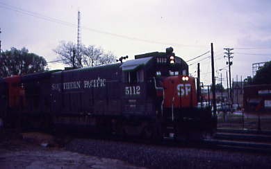 We were stopped downtown by Southern Pacific B23-7 5112, built by General Electric in 1980.