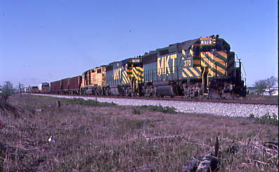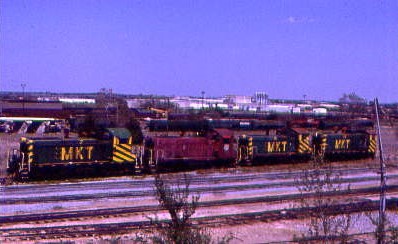 At Ray was MKT RS3M 146, nee MKT 1553, built by American Locomotive Company in 1950 at the east end of the yard. We also saw an all-yellow southbound freight with two units lettered Missouri Pacific.