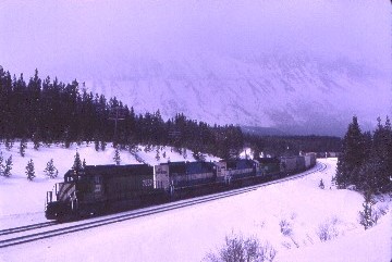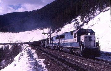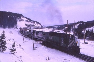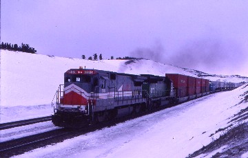 3/20/1989 After breakfast and watching Amtrak go through, Ron and I drove on Highway 2 east of Summit and another hike netted us the Empire Builder. We caught a westbound and followed it through Essex as we made our way toward Whitefish, where we found three trains on the way.