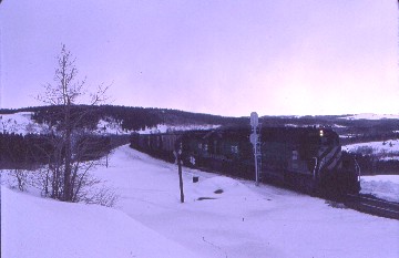3/19/1989 Awakening on the Empire Builder this morning was interesting as one had to find where the lounge car's location was, now that the Spokane and Seattle sections of the train had been combined. It did not take too long and I enjoyed my breakfast. We were approaching Whitefish, a crew-change point and it had recently snowed here and was a picturesque winter scene. We departed on time as I was enjoying the Columbia Falls and onto Belton, also known as West Glacier. The canyon east of Belton was stunning and we passed two westbound freights between Nyack and Paola. I returned to my seat as the train went through Pinnacle and by the Essex crossovers, the conductor came to get me and we went downstairs, then passed the Izaak Walton Inn and stopped at the snow-covered platform, where I detrained.