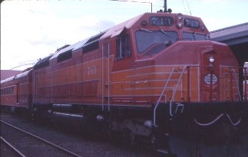 3/23/1989I awoke as the Baby Builder was cruising along the Columbia River just south of Pasco. It was a cloudy morning and once in the Columbia River Gorge, the rain started the rest of the way to Vancouver, where I detrained on time. From the cover of the station's overhang, I watched the trains roll by on a very wet morning until my Coast Starlight arrived later that afternoon.