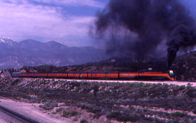 For the 50th Anniversary of Los Angeles Union Station, both the Southern Pacific 4-8-4 4449 and Union Pacific 4-8-4 8444 were invited to participate in the celebration. The schedule of events and movements of these engines were in Flimsies and updated on the Flimsies Hotline. The highlight of the engines' journeys would be side-by-side running into Union Station on May 5th and the side-by-side trek up Cajon Pass on May 8th. My friend Bill Compton decided to join me, with another friend, Jeff Hartmann, joining for Southern Pacific 4449's journey to West Colton late in the afternoon of May 7th.