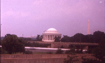 7/22/1990 The next morning I awoke just as the train was arriving at Alexandria and repeated the views of arriving at Washington, DC. It was overcast with low clouds as we crossed the Potomac River and entered the District of Columbia. As it was Sunday, the streets were empty, making our nation's capital more like a ghost town than the bustling place of our national government. We proceeded into the tunnel and after passing under Capitol Hill, arrived at Washington Union Station for the last time, where I detrained after a nice quick trip from Miami and had seven hours to fill.