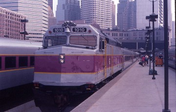 7/16/1990 I awoke in Massachusetts as we were making our final run towards Boston. While I was asleep, the train passed through parts of Maryland, Delaware, Pennsylvania, New Jersey, New York, Connecticut and Rhode Island and was pulled by an electric locomotive from Washington to New Haven and by a diesel the rest of the way to Boston. My breakfast arrived consisting juice, doughnuts and other assorted pastries, then my bed was made up and the room returned to a seating area as we arrived at Route 128, a suburban stop for the greater Boston area, which is really a large park-and-ride lot. We sprinted to our next stop at Back Bay before I enjoyed the entrance into the city of Boston and arrived at South Station on time, ending my ride up the Northeast Corridor.