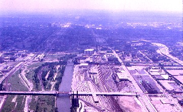 I followed his advice and began walking to Sears Tower, stopping at the Taste of Chicago show before going to the top of the world's highest building. It was not surprising that my favourite side was the one which overlooked Amtrak's maintenance base. After having my fill of the fantastic views, a fifty-two second elevator ride took me back to ground level and I went out into the streets of Chicago and found the double-decker bus tour. Since it was a nice summer afternoon, I opted for the upper level open air seat and we journeyed east towards Lake Michigan, then went south on Lakeshore Drive out to the Museum of History, and Museum of Science and Industry to Soldier Field. We turned around and drove up Lakeshore Drive passing Navy Pier and the wharves on Lake Michigan before we passed the classy waterfront apartment buildings, then circled to the north of downtown Chicago, crossed the Chicago River twice before returning to our point of origin.