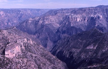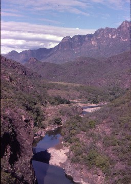 When the rush was over and after enjoying the Chinipas bridge, I went back inside to restock, much to Sandy's surprise then returning outside, the pace was much slower, allowing me to look out at the canyon and to point items of interest to my two regulars who had come out to join me. The Rio Serpentine had cut several new channels along its course, probably from that storm last December and it was a beautiful warm day and I was glad that I was wearing one of my MacArthur baseball hats. Sandy then asked if I would explain about Temoris, which I was honoured to do.