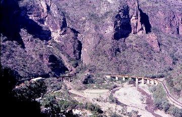 This would probably be the only trip where I would not have my camera to hand as we travelled through Temoris, but I considered it a blessing to experience it eastbound at least once without having to look through a lens. We entered Temoris and crossed the curved Santa Barbara bridge around the first 180 degree turn before stopping at the station. It was here that I gave the historical speech on the Chihuahua Pacifico Railway, its history and building and several passengers videotaped me. My timing was perfect as just when the train started to move, I finished to a round of applause. As we climbed the middle level, passengers thanked me for the narration.
