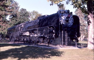 On display at Pioneer Park was Union Pacific 4-8-4 833 built by American Locomotive Company in 1939. Initially assigned to passenger trains, including the Overland Limited, Portland Rose and Pacific Limited, as diesels took over, the 4-8-4s were reassigned. It was retired in 1962 then donated to the City of Salt Lake in 1972.