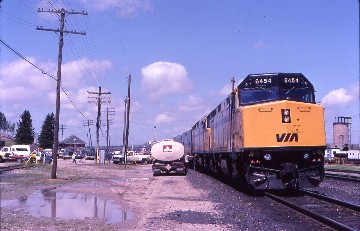 The Canadian VIA 2 6/26/1991This transcontinental passenger train is operated by VIA Rail with service between Union Station in Toronto, Ontario and Pacific Central Station in Vancouver, British Columbia. Canadian Pacific introduced this service on April 24, 1955, serving Montreal, Toronto and Vancouver. In 1978, Via Rail Canada acquired the service and, on January 15, 1990, designated the Canadian as its sole transcontinental service between Toronto and Vancouver. The new service replaced the former Super Continental, Canadian National's flagship passenger service and continues to run primarily over CN tracks.