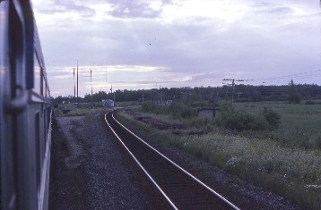 I detrained and photographed the rear of our train while it was serviced and as I walked back to my car, I kept hearing "Thunder Bay" being mentioned by the VIA crews. Since the only Thunder Bay I knew of was on this train's former Canadian Pacific before the VIA cutbacks, I began to wonder if we were going to be rerouted. I returned to my room to consult my CN timetable then went back outside and I asked a carman about what I had heard. He informed me that CN piled up a freight train outside of Sioux Lookout where it ran into a mudslide, so our train would follow its regular route to Longlac then be rerouted to Winnipeg. He asked me to not let on that he had told me this, which I agreed to then he returned to work. I was really excited and felt very lucky that I was going to be riding part of the Canadian's original route, as well as a CN branch line to boot.