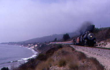 Southern Pacific 2472 at Rincon Point. We followed the train to Ventura where we overtook it and taking no chances, we took the cutoff to California Highway 118 to reach the overlook of the Chatsworth Rocks.