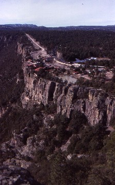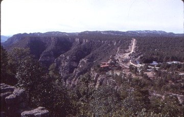 12/29/1997 I awoke up at 8:30 AM and had a cup of tea before walking to the hotel to have a breakfast of breads after a thirty minute wait. Divisidero was deserted so I walked the rim of the canyon trail to enjoy the view of Urique Canyon and followed it around for several different perspectives. Back at the platform area, I bought a small hand-woven basket for my mother before returning to the "Rapidan River" to read yesterday's newspaper and listened to John Cougar then joined Ismael outside and we waited for the group to return on the bus. I really had enjoyed my first stay in Divisidero with the peace and quiet.