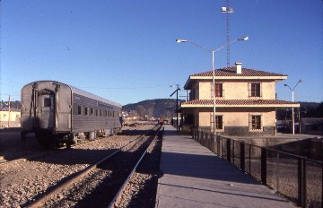 12/27/1997 The next morning we met out by the pool and Anna's cold was much worse and she could barely speak. We put our luggage into a pickup truck and Bill drove us in his van to the train station then added our luggage to the pile and the other six passengers besides Anna watched them as Bill and I drove over to his railroad cars in the yard since he wanted me to see the former Southern Pacific three-quarter dome car that he had just acquired. The security guard let me in and I toured it then upon our return to the station and after all of the locals had passed through Customs, it was now our turn. However, there was a new system which necessitated pressing a button and a green light meant you went through and a red light meant you were searched. I pressed green and had no problem but Anna pressed red and was briefly detained. The only thing I could think of is if you pressed the button lightly, it turned red and pressing it hard turned it green. It made no sense to me but it must work for the Mexican Customs officials.