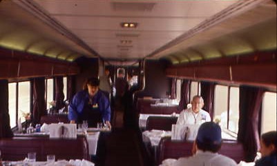 We made our way up the Salinas Valley and had dinner at the first seating, where I had an excellent beef tenderloin and more turtle cake for dessert. Afterwards, I went to the Pacific Parlour Car theater on the lower level and watched Michael Jackson and Diana Ross in "The Wiz", which I really liked then had a night cap of ginger ale, much different from my drinking days. Once back in the room, I made it up and Bruce was in the lower bunk and myself in the upper as we departed Oakland and proceeded into the California night.