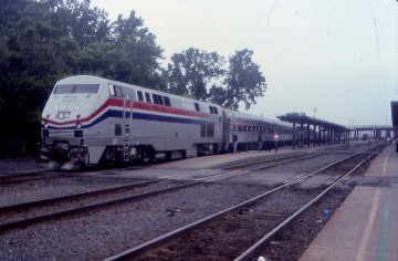 Pere Marquette 370 6/19/1997The last time I attempted to ride this route eastbound, I was in a van on the highway instead of the rails due to the lateness of the Texas Eagle, so tonight would be my first eastbound journey on the Pere Marquette. The train consists of two General Electric B32-8WH locomotive and GP38-2 90 facing backwards, a former Capitoliner coach, in which I was riding, and a Horizon coach. The conductor led every passenger to their seat saying that we would have a full train and I chose a window seat on the right. We departed on time but lost head-end power when we exited the station but just as we slowed down to have it fixed at the coach yards, it came back on and stayed on for the reminder of the trip, which I was reclaiming for my sobriety.