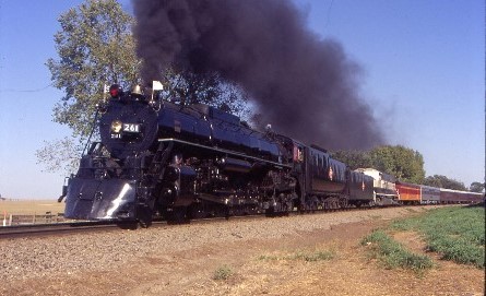 Milwaukee Road 261Milwaukee Road 261 is a 4-8-4 "Northern" type steam locomotive built by the American Locomotive Company in Schenectady, New York in July 1944 for the Chicago, Milwaukee, St. Paul & Pacific Railroad. The coal-fired locomotive, weighing 460,000 pounds, is rated at 4,500 hp and a maximum speed of 100 mph and had a three-chime whistle and airhorn mounted on it. It was used for heavy mainline freight work until being retired by the railroad in 1954. Instead of being cut up for scrap, 261 was preserved and donated to the National Railroad Museum in Green Bay, Wisconsin in 1958. Today the locomotive is owned, operated and maintained by Minneapolis-based nonprofit organization Friends of the 261, which runs seasonal excursion trains. Restored in 1993, it has logged more than 25,000 miles under its own power since that time.