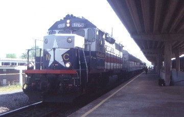 The Piedmont 73 4/15/1998As I waited patiently in the Amtrak Raleigh Station, I freshened up, bought another coffee mug and read USA Today. At 7:00 AM, I walked outside and sat on a bench waiting for my three-car train to arrive.