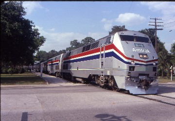 The Silver Meteor 97 4/13/1998I played my favourite game in New York City, watching the Solari departure board flip over and my train's name climb to the top with the track number later displayed. I waited for that information and won the game again, being the first one to board the Silver Meteor and chose a window seat on the left before assiting two other passengers do the same. The Meteor left on time and my ticket was collected but no hat check was put up to reserve my seat and to let the crews down the line know where I was going. We popped out of the Hudson River tunnel in the last light of day before speeding across the New Jersey Meadowlands to Newark, where I obtained my first seatmate, as a mother sat next to me with her two daughters across the aisle. We were all going to Winter Park, Florida. The television monitors came on, but our side of the train did not have any audio, making watching the film a waste of time so I turned in after Philadelphia and slept all the way to South Carolina, with the exception of being woken up twice by train crews who wanted to know where I was going.