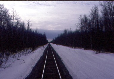 The train passed some beaver dams and Steve taught a lesson on the beaver's winter survival patterns. It was a pity that it was cloudy because my guide book mentioned that excellent views of Mount McKinley could be seen along the last eighty miles on a clear day. Maybe I will have better luck on the way back.