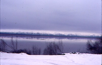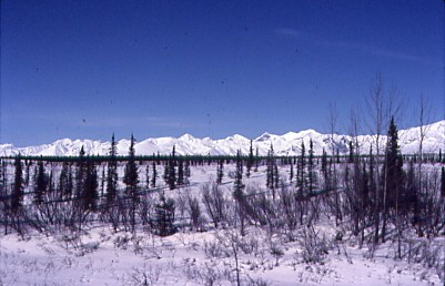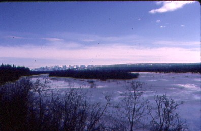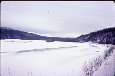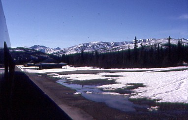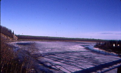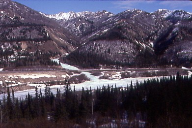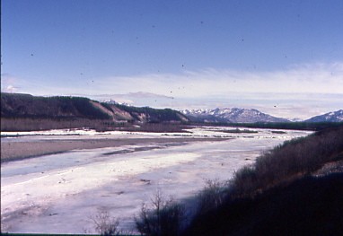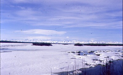 We paralleled the still-frozen Nenana River but the spring thaw was very near.