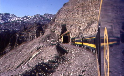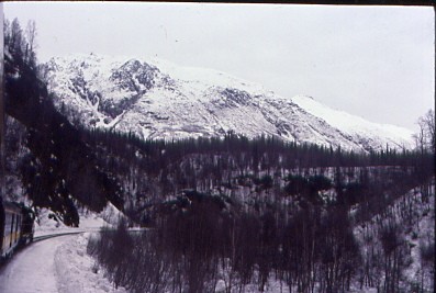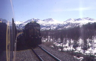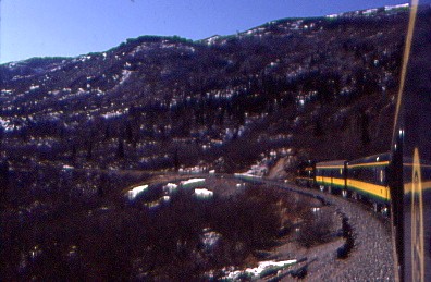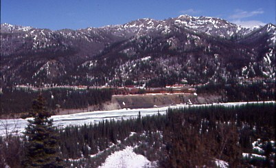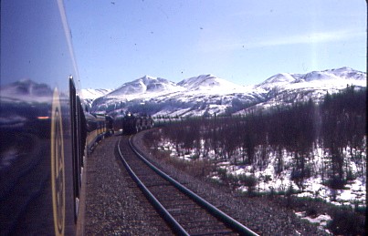 4/15/1999 Tax Day found my parents dropping me off at John Wayne Airport (Orange County) for my two-part flight to Anchorage. Leaving John Wayne, I was warned by my Learning Centre partner Pat Conner about the decrease of power that occurs over the residential area to the south of the airport that caused looks of terror on the faces of the passengers who did not know about it. Flight highlights were looking down on the California Zephyr descending Donner Pass at Yuba Gap, Williams Loop, the BNSF Highline, Mount Shasta and Crater Lake. The plane arrived in Seattle on time and I had a four hour wait for my night flight to Anchorage, where I stayed awake the entire journey and as we neared Anchorage, I could look over the top of the earth, seeing the light of day on the other side. It was incredible.