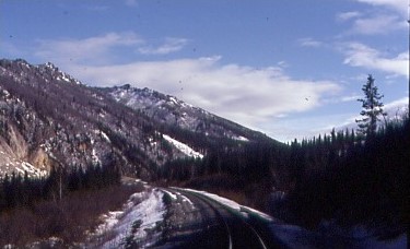 To the right of the train were the Panorama Mountains and to the northwest were the Fang Mountains. We then passed Windy siding at Milepost 326.7, named for a very obvious reason.
