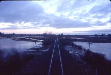 I walked back to the rear door and noted the train was not crowded but had a good number of passengers for a first run so early on a Sunday morning. We went under the Sacramento Light Rail line and past the junction with the Placerville Line before making our way south through the industrial area of southeast Sacramento, also passing the Siemens Plant where commuter and transit cars were built. I was excited as we passed Calvine Road which was the grade crossing I use to get to my brother's house. Every time I crossed those tracks, I always wondered when I would be riding across the rails. Today was the day! The train went through Elk Grove before passing under and over Highway 99 and we crossed the Consumnes River followed by the Mokelumne River then sped through Galt where the branch to Ione took off from the former Southern Pacific Valley main line, now Union Pacific.
