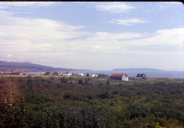 The bay now to the right was Gaspé Bay and the large land mass across it is the Cape Gaspé which makes up the northernmost end of the peninsula. The Chaleur continued inland one last time, crossing the L' Anse-a-Brillant Viaduct before returning to water level-running and crossing a causeway before we arrived at Gaspé forty minutes late.