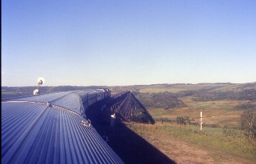 The new station was just south of Calder Yard and a few miles from downtown and interestingly, I had a short new little piece of mileage on the Canadian that I had not expected. This station eliminated the long reverse move required to reach the downtown station. The train was refuelled, watered and cleaned during our layover; the watering was done by employees on roller blades and it was interesting to watch them perform their jobs. The weather was shorts weather with a nice breeze blowing and I used my time to explore the station, after which we departed an hour and thirty-two minutes late. West of Edmonton at a grade crossing, Allision's father, brother and grandfather held up a sign that read "Goodbye Allison" for her and her mother, also named Allison. Everyone in the dome car waved and I hoped they had better luck than the family from Sioux Lookout.