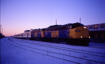 That was not the only show going on. A woman started telling a story of a Canadian that had hit a car east of Viking and after hearing this five times, I opted for my Walkman to drown her out. The meteor shower helped pass the time nicely and after a forty-minute delay, we continued into the night and the next morning, I learned that the train had hit a clump of ice on a grade crossing and it bounced its way under the train, raising the ballast before breaking an air hose in the sleeping car section. What a night! The only way it could have been better would have been a show of the Northern Lights but alas, no performance occurred.