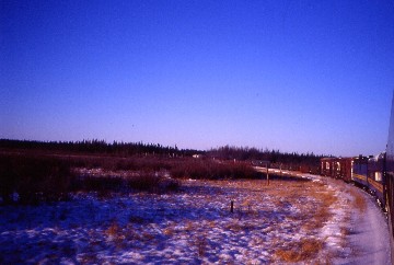 VIA 693 The Hudson Bay 12/14/1999This train, formerly known as Northern Spirits, is a twice weekly passenger train operated by VIA Rail and is the only dry-land connection between Churchill and the rest of Canada. The service, which runs through Manitoba and Saskatchewan, travels on the Canadian National Railway line north to The Pas, where it transfers to the Hudson Bay Railway, passing through Wabowden, Manitoba, with a spur from Sipiwesk to Thompson, and Gillam on its way to the Port of Churchill on Hudson Bay.