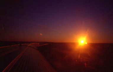 Sunrise from the coach's vestibule after I arose for my usual breakfast, this time in the Skyline Car, as we were now a peak-consist Canadian. My table mate was a former Burlington Northern employee on a Canrail Pass who I met in Winnipeg while we waited for the train. I enjoyed music the rest of the way into Edmonton, our next servicing stop.