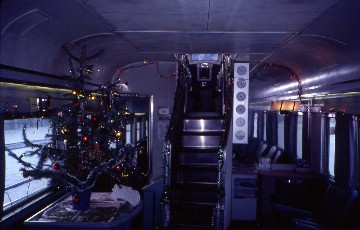 I was asked by the lounge attendant if I would like to have a turkey dinner since the engineers' wives had prepared them dinner and made extra for everyone left on the train since they knew that nothing would be open in Prince Rupert when we arrived. I sat at a table in the lounge area and while waiting, wrote the tales of today's then enjoyed a large plate of turkey with gravy, a dinner roll and a can of Coca-Cola. It was an excellent Christmas dinner on the first White Christmas I had experienced and thanked everyone involved with my meal and wished our engineer 'Merry Christmas' over the radio. It was a Christmas I will never forget. I returned to the dome for the rest of the journey to Prince Rupert and looking out into the darkness, wondered what I would behold on my return in the light of day tomorrow. As the Skeena passed the industrial shoreline of Prince Rupert, the dome's lights were turned back on and I went to sit in the beaver tail section of the car as the train was wyed in the Canadian National yard prior to our on-time arrival. Our lengthy delay was made up due to the lack of freight trains this Christmas Day.