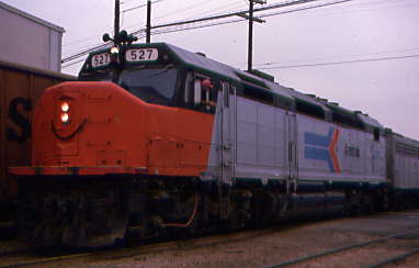 SDP-40F 527 waiting on time in Santa Ana. 1974