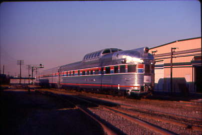 Amtrak 74 again, this time at Orange with Santa Fe F-units and Hi-level cars in 1973.