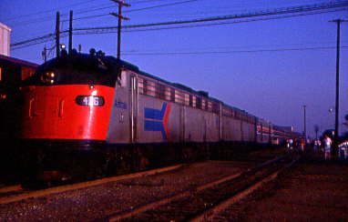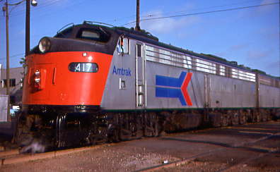Amtrak E9A 417, exx. Union Pacific 912A, nee EMD Train of Tomorrow built by Electro-Motive Division in 1947, along with E9A 416 and E9B's 451 and 452 were assigned to San Diegan service for over a year. 1976