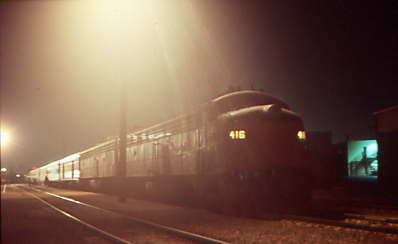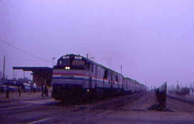The Sunset Limited arrives in Pomona on a foggy Southern California morning in 1984.