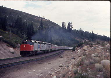 Another SF Zephyr with 625 on the point heads east near Reno. 1976