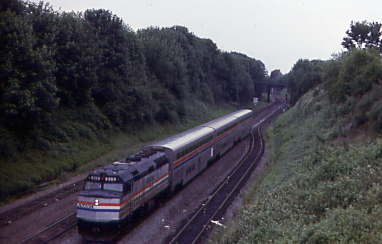 The first run of the Amfleet cars and new F-40PH's with SDP-40F 525 leading 224 and 223 in May of 1976. The 525 was on the point as the F-40's hadn't had their Automatic Train Stop shoes added yet.