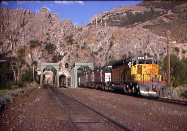 The SF Zephyr with a UP high speed SD-40-2 on the point at Taggett, Utah in 1980.