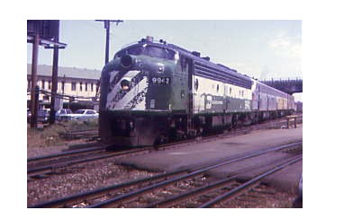 BN E8A 9942 coming off the San Francisco Zephyr in Denver during the power swap that took place every day. 1975